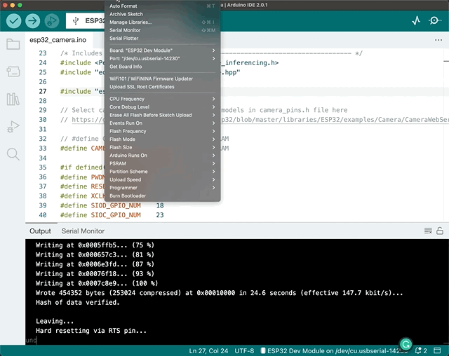 Knowledge requiredThis tutorial assumes that you’re familiar with the Arduino IDE, and that you’re comfortable building Arduino sketches. If you’re unfamiliar with these tools you can build binaries directly for your development board from the Deployment page in the studio.
