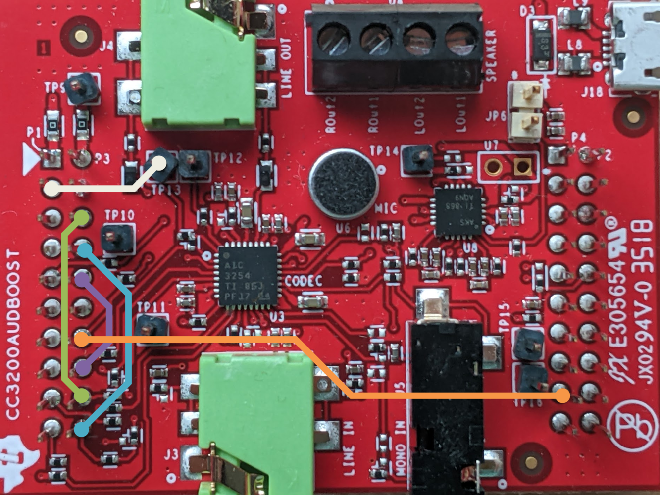 Jumper connections for CC3200AUDBOOST