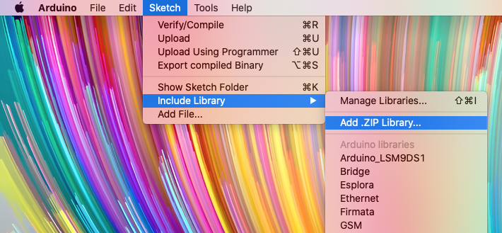 Choose Sketch > Include Library > Add .ZIP library….