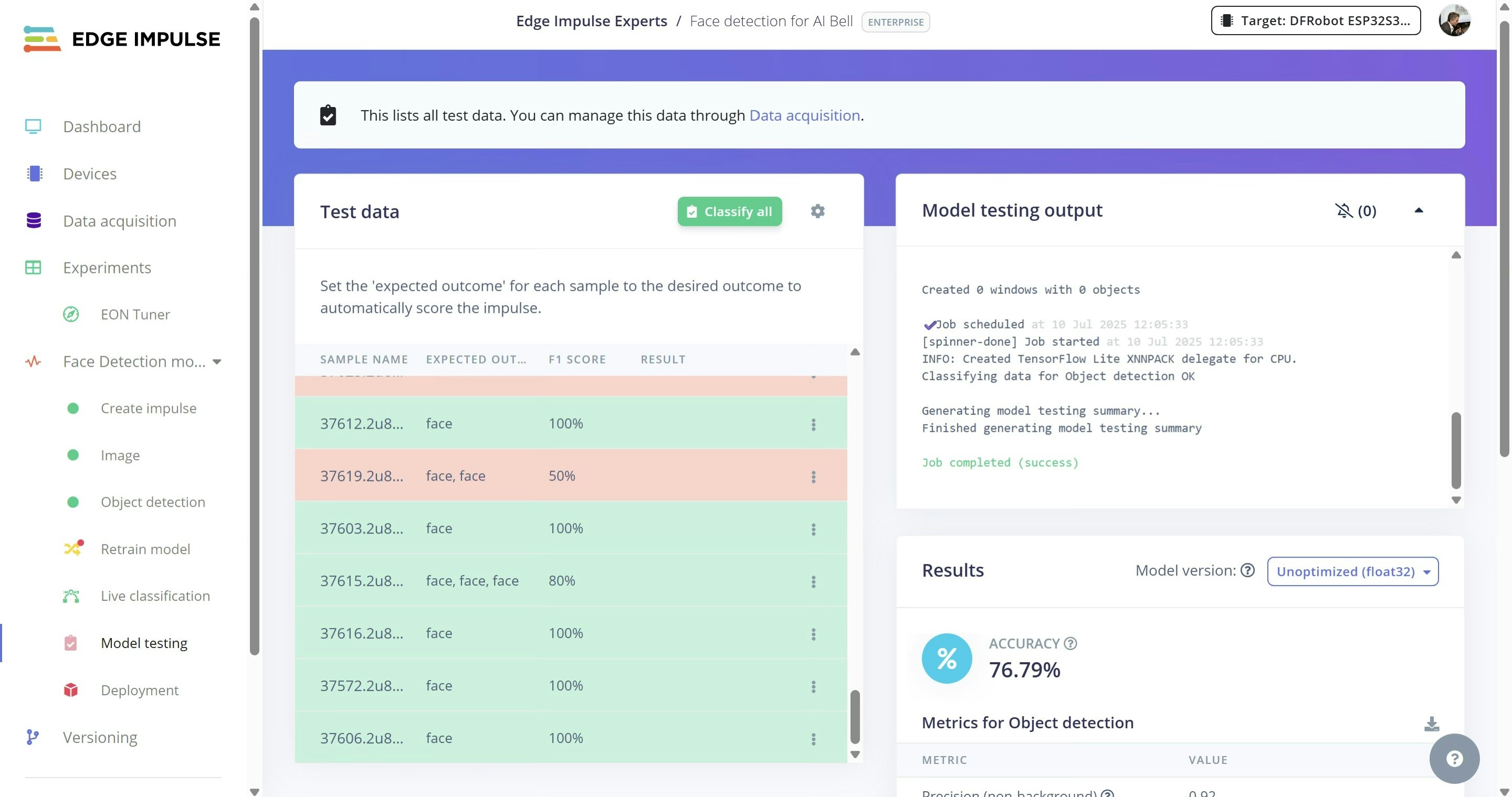 - Each picture is sent to a local ML model trained with Edge Impulse.