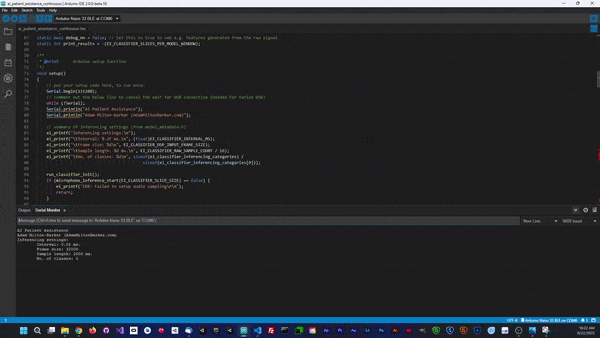 Here we have created a simple but effective solution for detecting specific keywords that can be part of a larger automated patient assistance system. Using a fairly small dataset we have shown how the Edge Impulse platform is a useful tool in quickly creating and deploying deep learning models on edge devices. You can train a network with your own keywords, or build off the model and training data provided in this tutorial. Ways to further improve the existing model could be:- Record more samples for training