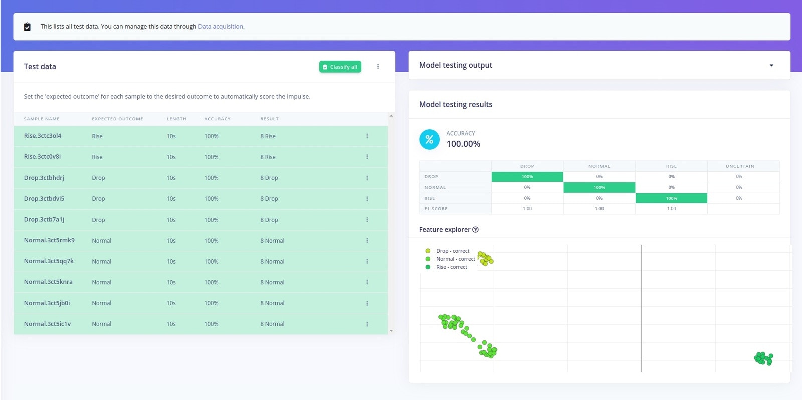 Finally, go to Model testing and click on Classify All to check how your model performs on new data.