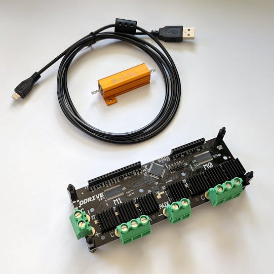 Most of the magic is going to happen in the Edge Impulse studio, so if you’re following along be sure to open a free account! For those who don’t know, Edge Impulse is an engineer-focused platform designed to streamline the process of building machine learning models for edge / embedded devices. Next, for our motor setup we will be using an ODrive V3.6 (24V) controller with a brushless motor (D5065) from the same company. ODrive manufactures affordable yet robust motor control hardware that can be interfaced with via USB or UART serial connection. Any motor controller that allows querying power data over serial connection can be used!