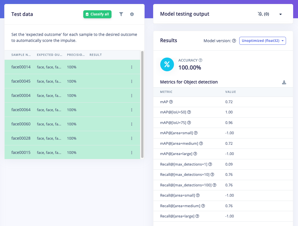 - Face Detection: https://studio.edgeimpulse.com/public/859925/live