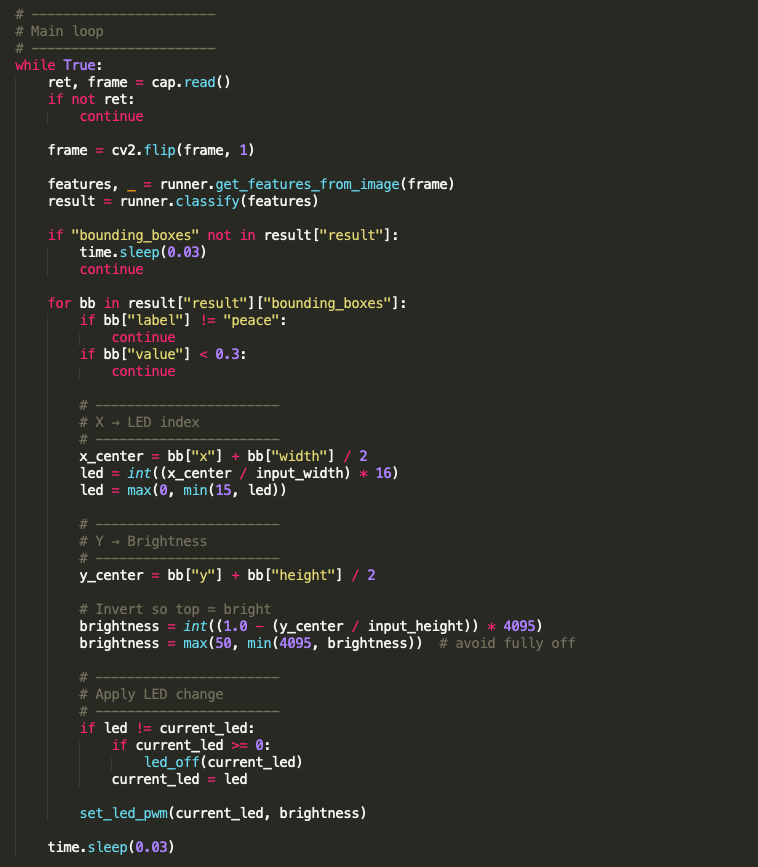 python3 gesture_control_led.py (again add sudo if needed).