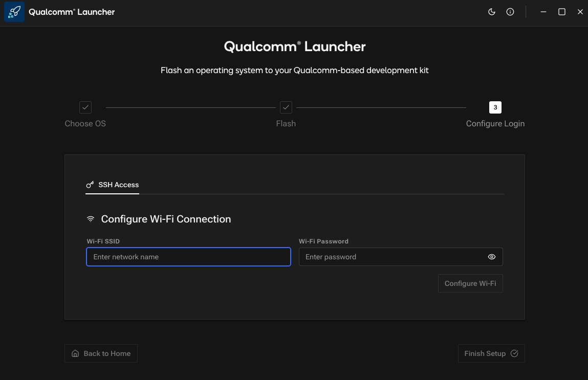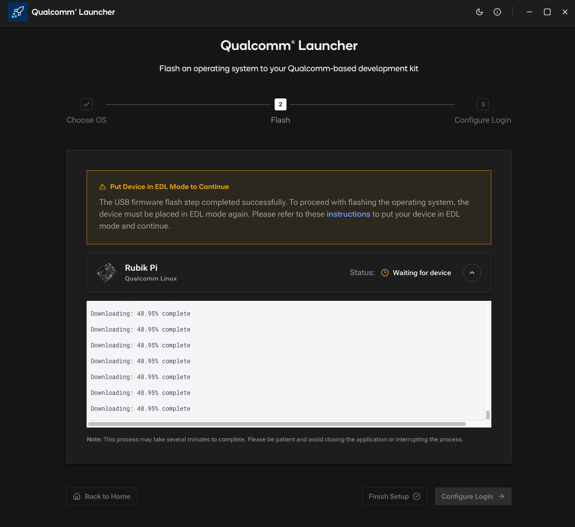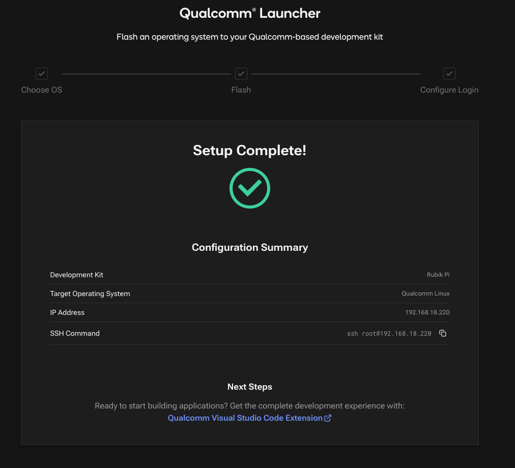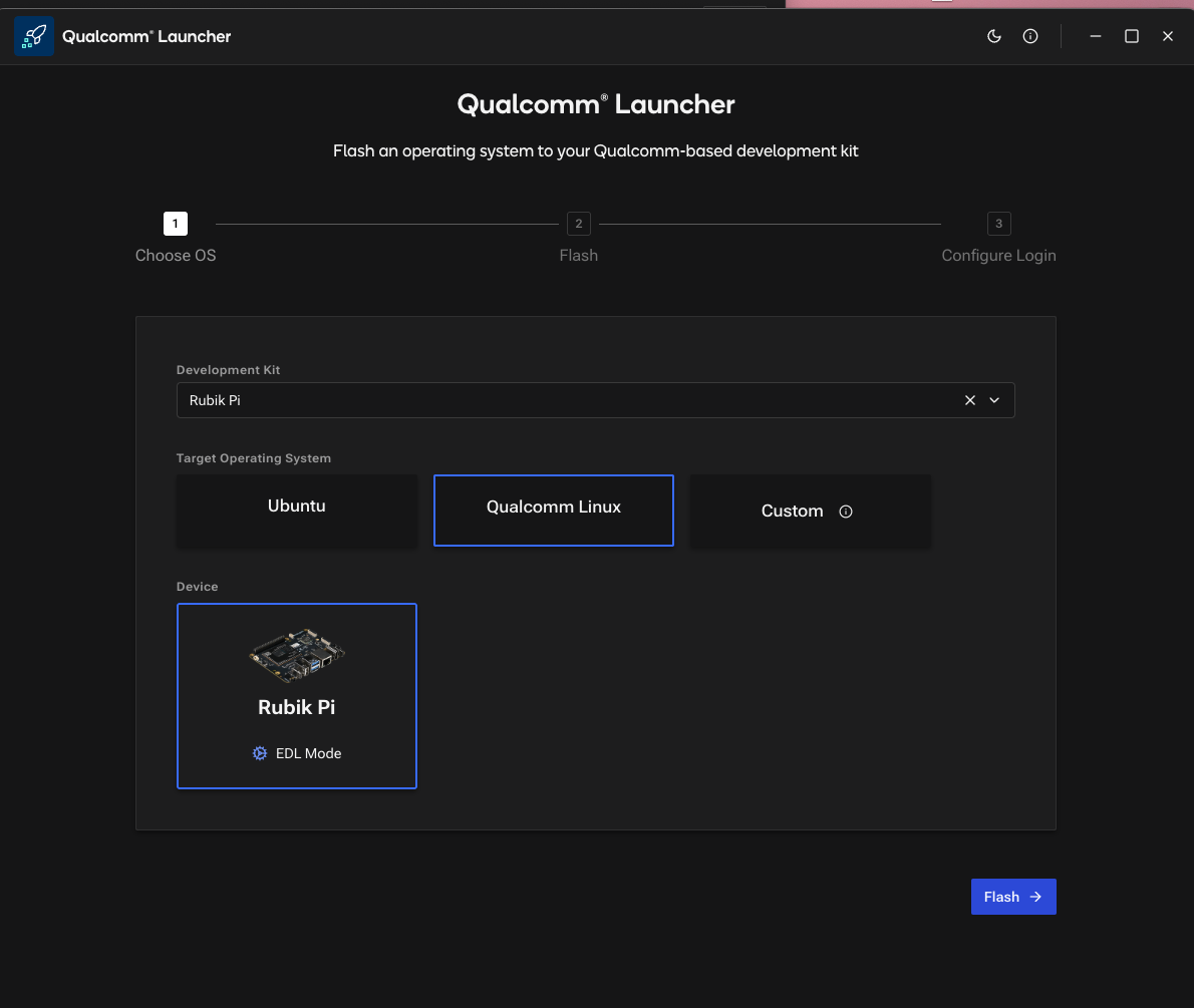 When we receive the Rubik Pi 3, we will find it pre-installed with either Qualcomm Linux, or a minimal Ubuntu OS version. If yours comes with QC Linux, you need to switch to Ubuntu OS, because it lacks ‘apt’ and ‘dpkg’ package managers, and has limited OpenCV and GStreamer support without rebuilding the OS. (Qualcomm Linux is intended to be used for final products, not development purposes). Prepare a USB-C and a micro USB cable, then follow this link — https://softwarecenter.qualcomm.com/catalog/item/Qualcomm_Launcher — to download Qualcomm Launcher (flashing utility). Next, follow the instructions here: https://www.thundercomm.com/rubik-pi-3/en/docs/rubik-pi-3-user-manual/1.0.0-u/Update-Software/3.2.Flash-using-Qualcomm-Launcher to flash the board with Ubuntu OS.