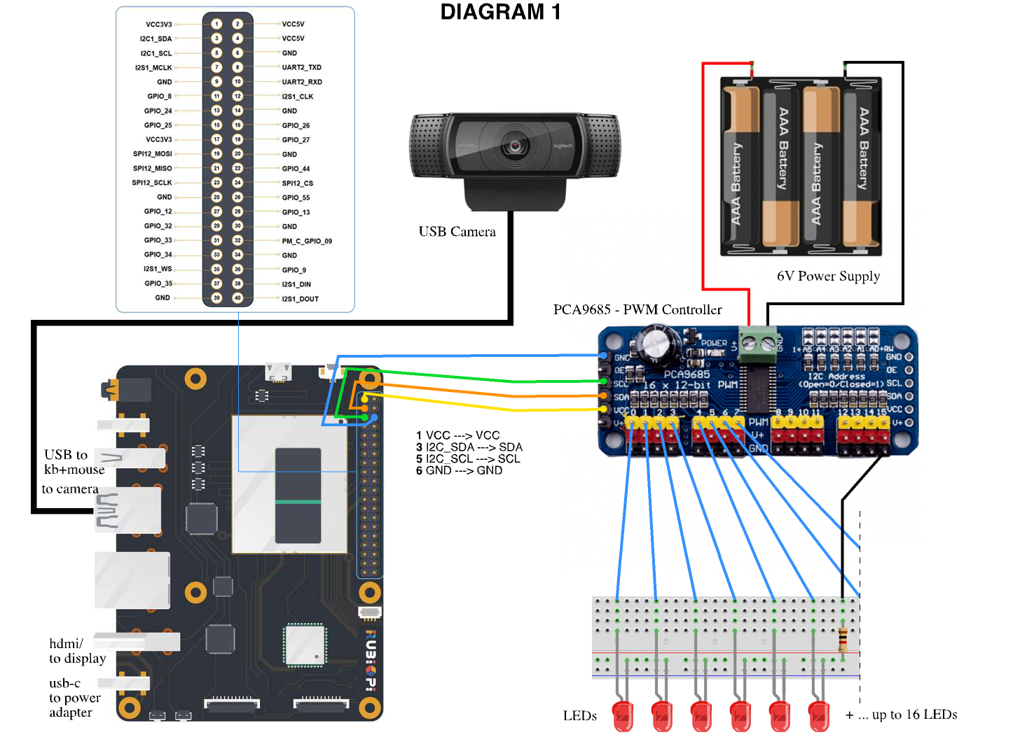 PCA9685 with LEDs setup