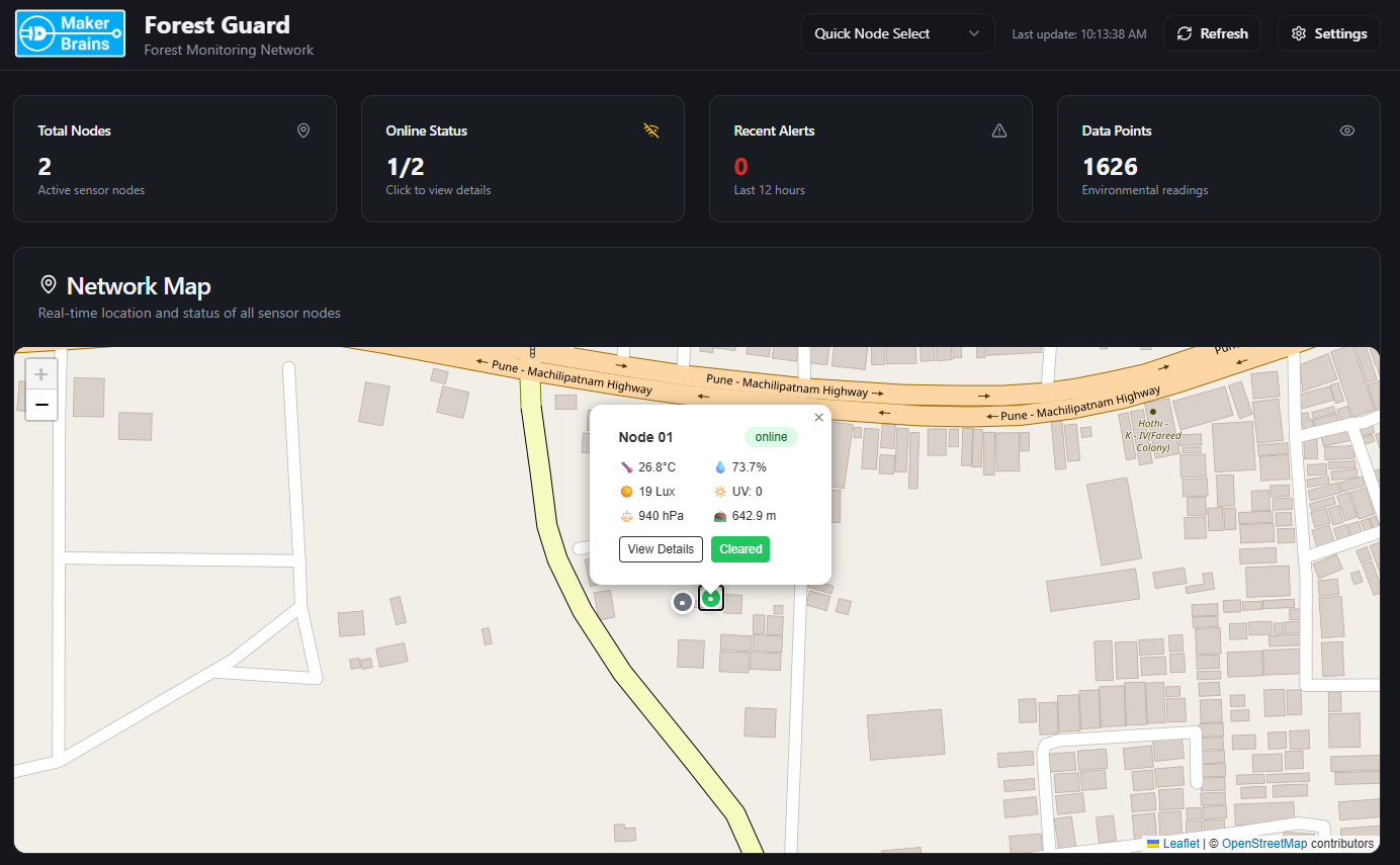 Forests are the lungs of our planet, yet they remain vulnerable to poaching, illegal logging, and devastating wildfires. Remote regions are often unmonitored because they lack infrastructure, no cellular coverage, no internet, and no reliable power. Traditional solutions depend on towers, GSM networks, or satellite links, all of which are either unreliable or prohibitively expensive in deep forest zones. Forest Guard redefines forest monitoring with a self-sustaining, decentralized, and intelligent mesh network that brings security where no traditional network can.