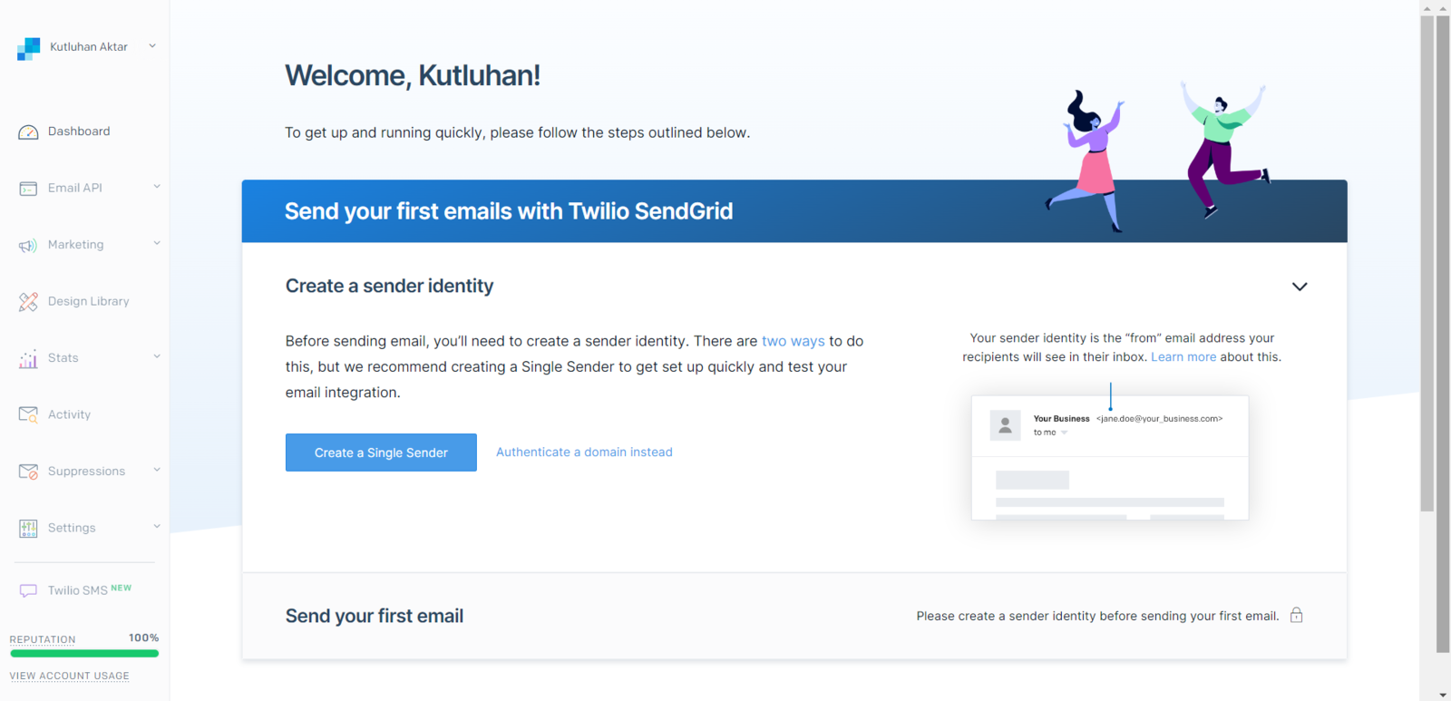 Step 3: Creating a Twilio SendGrid account to send emails from localhost