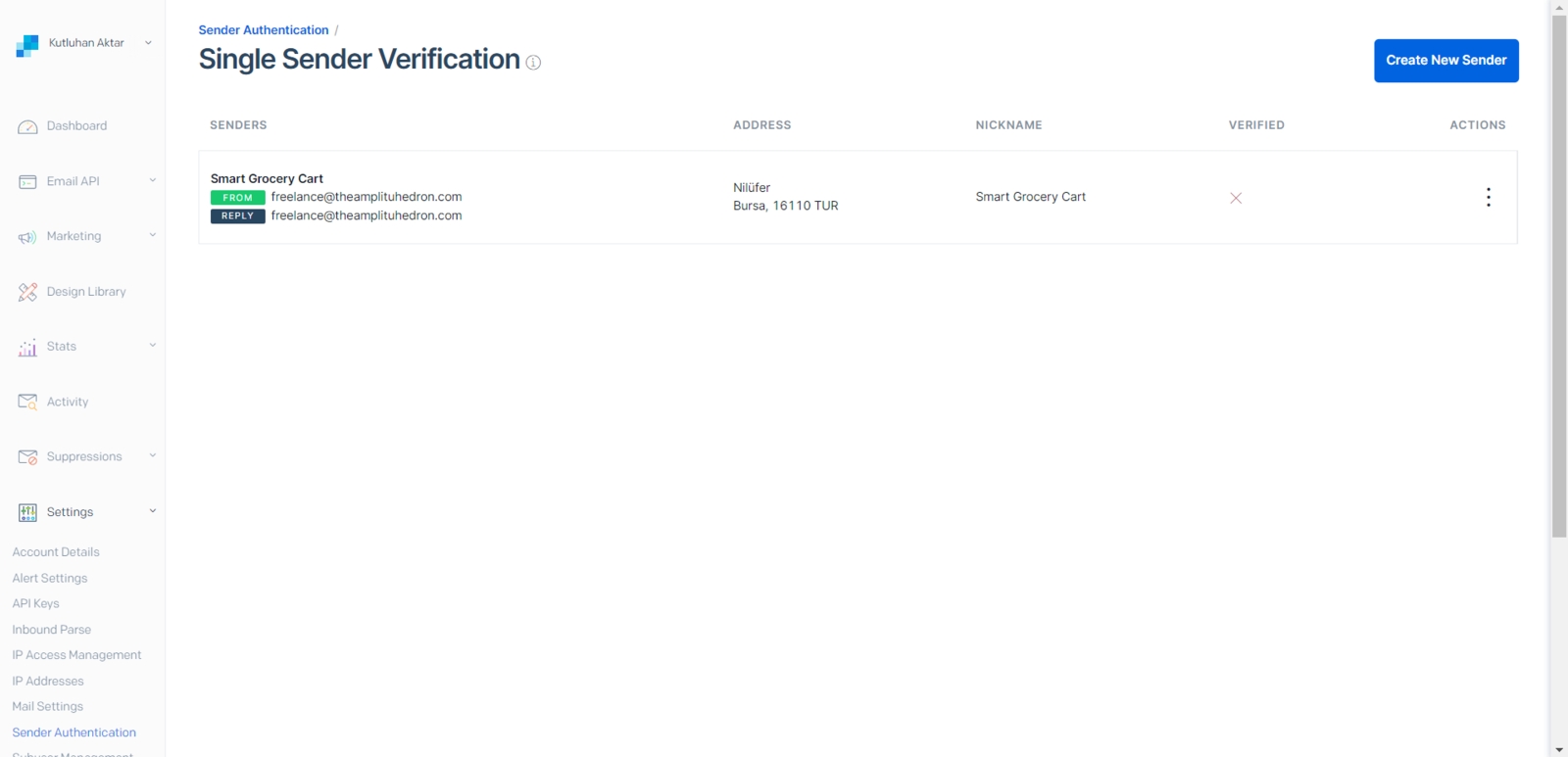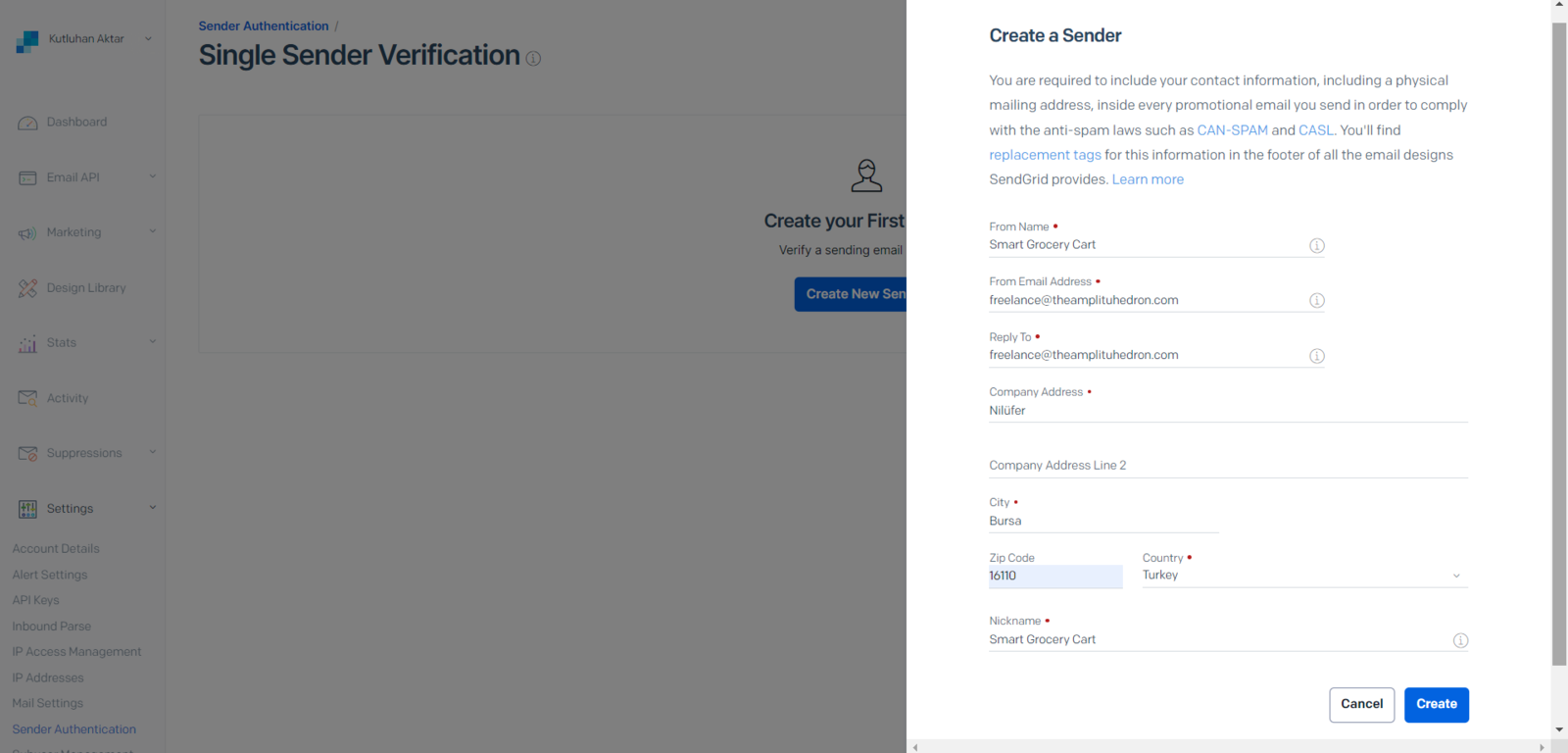 Since I wanted to provide a wholesome user experience with this device, I decided to make it able to send the list of the products added to the grocery cart and the payment link to the customerβs registered email address on the database. However, I did not want to make this feature dependent on a paid email forwarder or cloud service. Therefore, I decided to send HTML emails directly from localhost via Twilioβs SendGrid Email API. SendGrid Email API provides proven email deliverability with its cloud-based architecture and has free of charge plan with 100 emails per day for relatively small projects like this. Also, SendGrid API provides official libraries for different programming languages, including PHP. :hash: First of all, sign up for SendGrid and create a new free trial account.