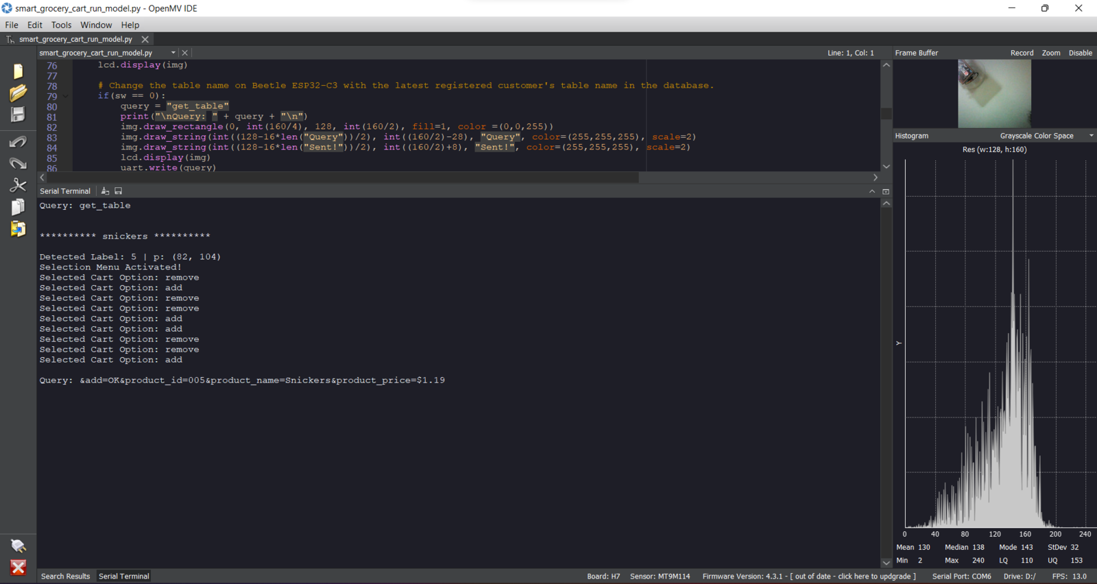 Step 9: Running the FOMO model on OpenMV Cam H7 to detect products and communicating with the web application via Beetle ESP32-C3