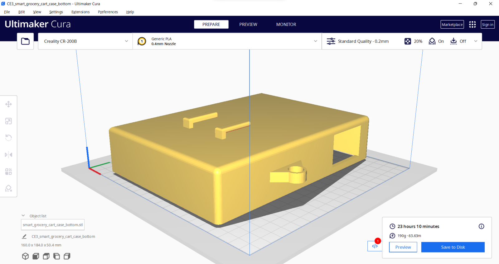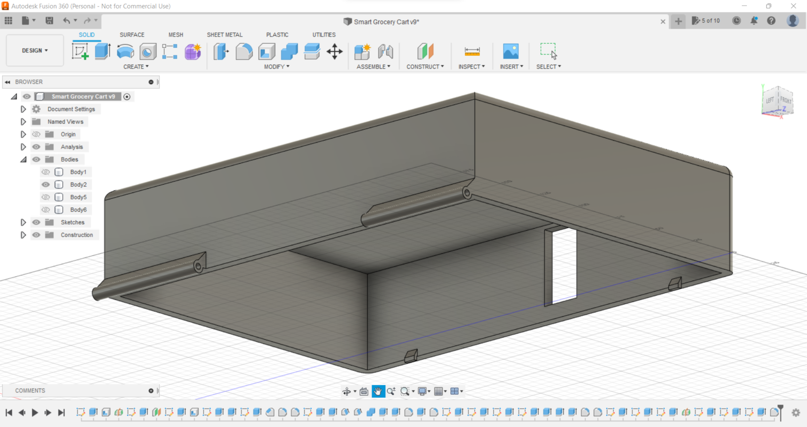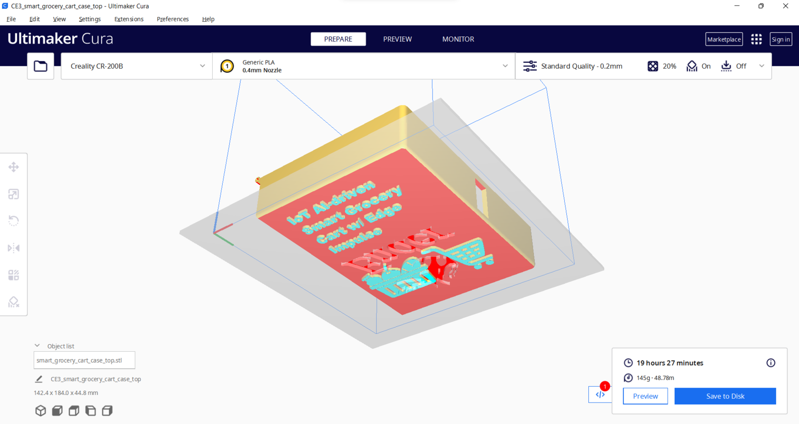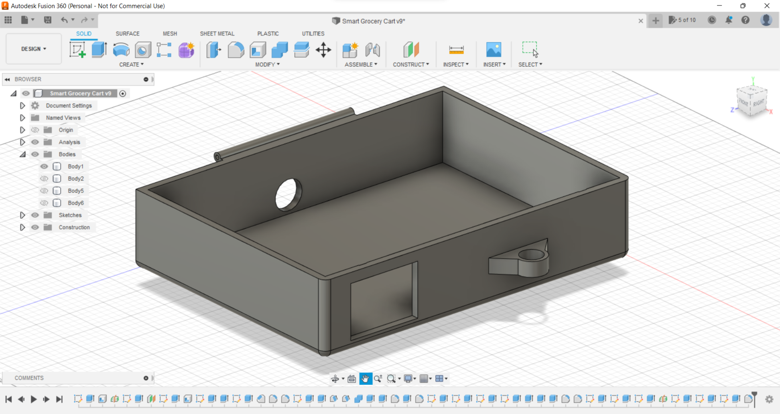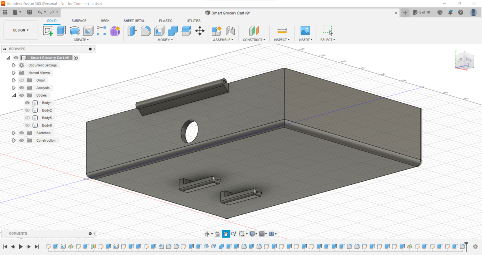 Since I focused on building a budget-friendly and easy-to-use device that captures food retail product images, detects products with object detection, and provides an exceptional customer experience, I decided to design a robust and sturdy semi-transparent hinged case allowing the customer to access the RFID reader and the joystick effortlessly. To avoid overexposure to dust and prevent loose wire connections, I added two snap-fit joints to the hinged case. Also, I decided to emboss different grocery cart icons on the top part of the hinged case to emphasize the shopping theme gloriously :) Since I needed to connect the top and bottom parts of the hinged case seamlessly, I designed a pin with pin ends (caps). To make the device compatible with any grocery cart, I added two hooks on the back of the bottom part. Also, I added a ring to the bottom part to attach the assigned RFID key tag. I designed the top and bottom parts of the hinged case, the pin, and the pin ends in Autodesk Fusion 360. You can download their STL files below.