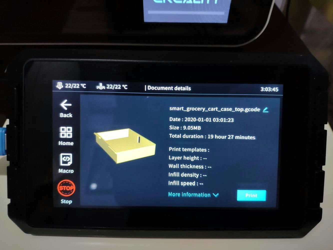 Especially after the recent success of Amazon Go cashierless convenience stores, there is a surge in adaptations of this relatively new approach to the shopping experience, including computer vision, sensor fusion, and deep learning. Since the nonpareil concept of cashierless stores is to make shoppers avoid tedious checkout lines and self-checkout stations, the stores equipped with this technology improve the customer experience and increase profit margins comparatively. While implementing this technology in a grocery or convenience store, smart grocery carts are the most prominent asset to provide an exceptional customer experience like Amazon Go. Although smart grocery carts improve the customer experience and plummet maintenance costs by providing an automated product tracking and payment system, the current integration methods are expensive investments for small businesses in the food retail industry since these methods require renovating (remodeling) store layouts or paying monthly fees to cloud services. After perusing recent research papers on smart grocery carts, I noticed there is no appliance devised for converting regular grocery carts into smart grocery carts without changing anything else in an existing establishment. Therefore, I decided to build a budget-friendly and easy-to-use device giving smart grocery cart perks to regular grocery carts with a user-friendly interface. To detect different food retail products accurately, I needed to create a valid data set in order to train my object detection model with notable veracity. Since OpenMV Cam H7 is a considerably small high-performance microcontroller board designed specifically for machine vision applications, I decided to utilize OpenMV Cam H7 in this project. Also, I was able to capture product images easily while collecting data and store them on an SD card since OpenMV Cam H7 has a built-in MicroSD card module. Then, I employed a color TFT screen (ST7735) to display a real-time video stream, the prediction (detection) results, and the selection (options) menu. After completing my data set including various food retail products, I built my object detection model with Edge Impulse to detect products added or removed to/from the grocery cart. I utilized Edge Impulse FOMO (Faster Objects, More Objects) algorithm to train my model, which is a novel machine learning algorithm that brings object detection to highly constrained devices. Since Edge Impulse is nearly compatible with all microcontrollers and development boards, I had not encountered any issues while uploading and running my model on OpenMV Cam H7. As labels, I utilized the product brand names, such as Nutella and Snickers. After training and testing my object detection (FOMO) model, I deployed and uploaded the model on OpenMV Cam H7 as an OpenMV firmware. Therefore, the device is capable of detecting products by running the model independently without any additional procedures or latency. Since I wanted to create a full-fledged device providing a wholesome shopping experience, I decided to build a web application from scratch in PHP, JavaScript, CSS, and MySQL. Therefore, I installed an Apache HTTP Server (XAMPP) on LattePanda 3 Delta, which also has a MariaDB database. This complementing web application lets customers create accounts via its interface, receives requests from the device to add or remove products to/from the customerβs database table, and creates a concurrent shopping list from the products added to the grocery cart. Also, the application sends an HTML email to the customerβs registered email address when the customer finishes shopping and is ready to leave the store, including the generated shopping list and the payment link. Since OpenMV Cam H7 does not provide Wi-Fi or cellular connectivity, I employed Beetle ESP32-C3 to get commands from OpenMV Cam H7 via serial communication and communicate with the web application via HTTP GET requests, which is an ultra-small size development board intended for IoT applications. To send commands via serial communication and control the selection menu after a product is detected by the model, I connected a joystick to OpenMV Cam H7. I also utilized the joystick while taking and storing pictures of various food retail products. To enable the device to determine when the customer completes shopping and is ready to leave the store, I connected an MFRC522 RFID reader to Beetle ESP32-C3 so as to detect the assigned RFID key tag provided by the store per grocery cart. Also, I connected a buzzer and an RGB LED to Beetle ESP32-C3 to inform the customer of the device status. After completing the wiring on a breadboard for the prototype and testing my code and object detection model, I decided to design a PCB for this project to make the device assembly effortless. Since Scrooge McDuck is one of my favorite cartoon characters and is famous for his wealth and stinginess, I thought it would be hilarious to design a shopping-related PCB based on him. Lastly, to make the device as robust and sturdy as possible while being attached to a grocery cart and utilized by customers, I designed a semi-transparent hinged case compatible with any grocery cart due to its hooks and snap-fit joints (3D printable). So, this is my project in a nutshell π In the following steps, you can find more detailed information on coding, capturing food retail product images, storing pictures on an SD card, building an object detection (FOMO) model with Edge Impulse, running the model on OpenMV Cam H7, developing a full-fledged web application, and communicating with the web application via Beetle ESP32-C3. ππ¨ Huge thanks to PCBWay for sponsoring this project. ππ¨ Huge thanks to DFRobot for sponsoring these products: β Beetle ESP32-C3 | Inspect β LattePanda 3 Delta 864 | Inspect β DFRobot 8.9β 1920x1200 IPS Touch Display | Inspect ππ¨ Also, huge thanks to Creality for sending me a Creality Sonic Pad, a Creality Sermoon V1 3D Print