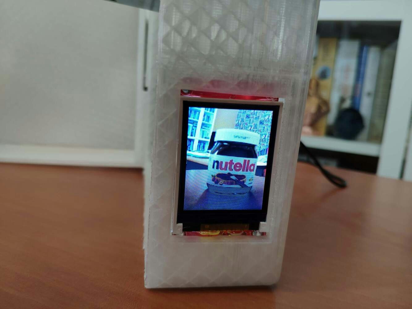 After uploading and running the code for capturing product images and saving them to the SD card on OpenMV Cam H7: πποΈπ² The device shows a real-time video stream on the ST7735 color TFT display.