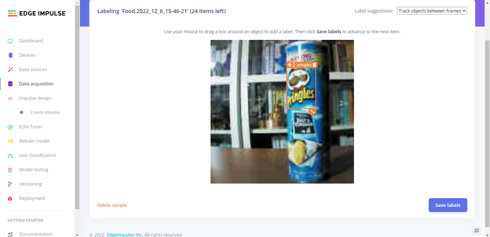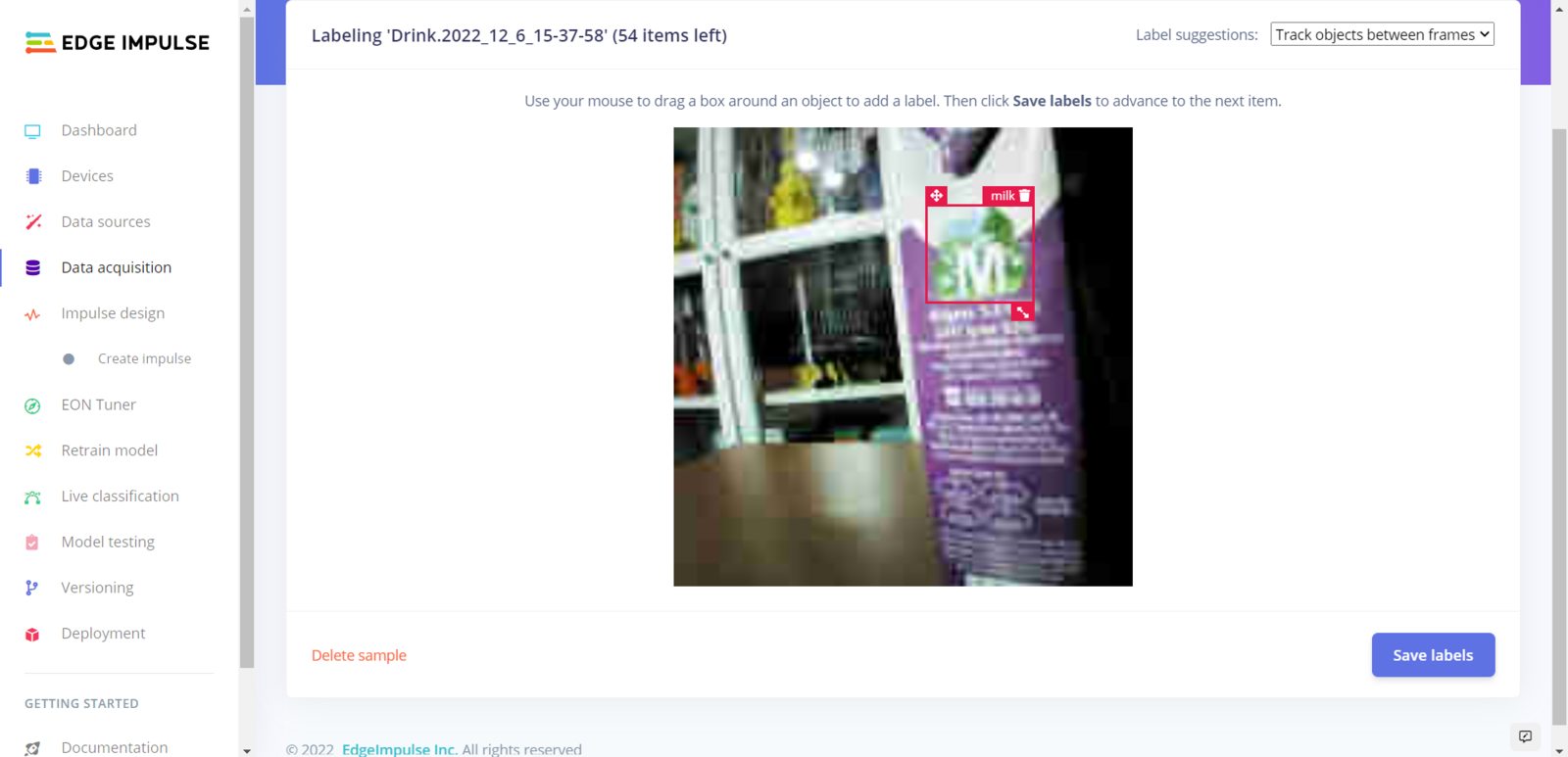 After collecting training and testing image samples, I uploaded them to my project on Edge Impulse. Then, I utilized the product brand names to label each sample. :hash: First of all, sign up for Edge Impulse and create a new project.