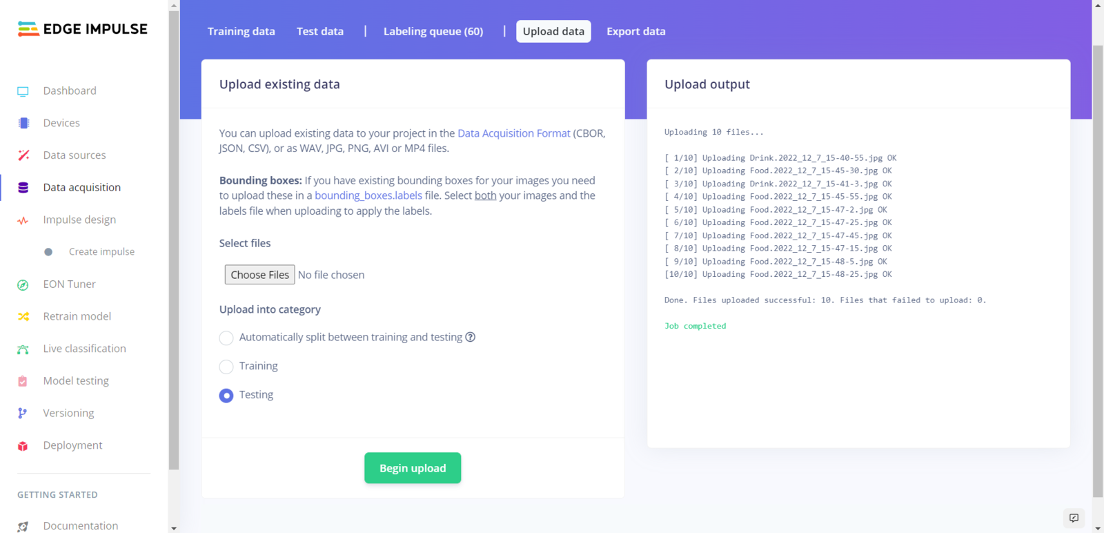 Step 6.1: Uploading images (samples) to Edge Impulse and labeling samples