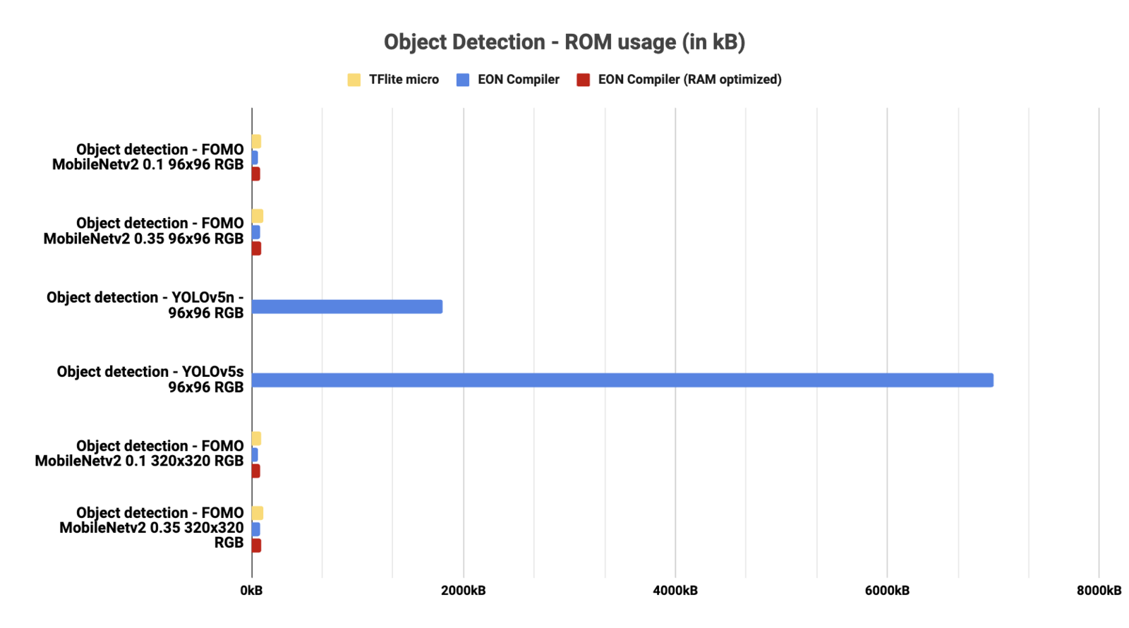 The EON Compiler, including the EON Compiler (RAM optimized) version, is a powerful tool for optimizing neural network projects. However, there are some important limitations to keep in mind: Unsupported Operators Not all operators are supported by our compiler. If your model includes an operator we don’t support, the compiler won’t be able to fully optimize your model. This means that certain complex operations within your model might prevent the compiler from working as efficiently as possible. Concerning the EON Compiler (RAM optimized) option, our slicing algorithm currently supports limited operators. For instance, if a standard convolutional model incorporates an unsupported operator in its architecture, the compiler will not be able to perform beyond that point. This limitation could restrict the application of our compiler to models that use only supported operations. Residual Layers We support models with certain types of residual layers—specifically, those that feed directly into a subsequent layer, like in MobileNet. However, if your model processes residuals in a more complex manner, the EON Compiler may not optimize it effectively.More metrics