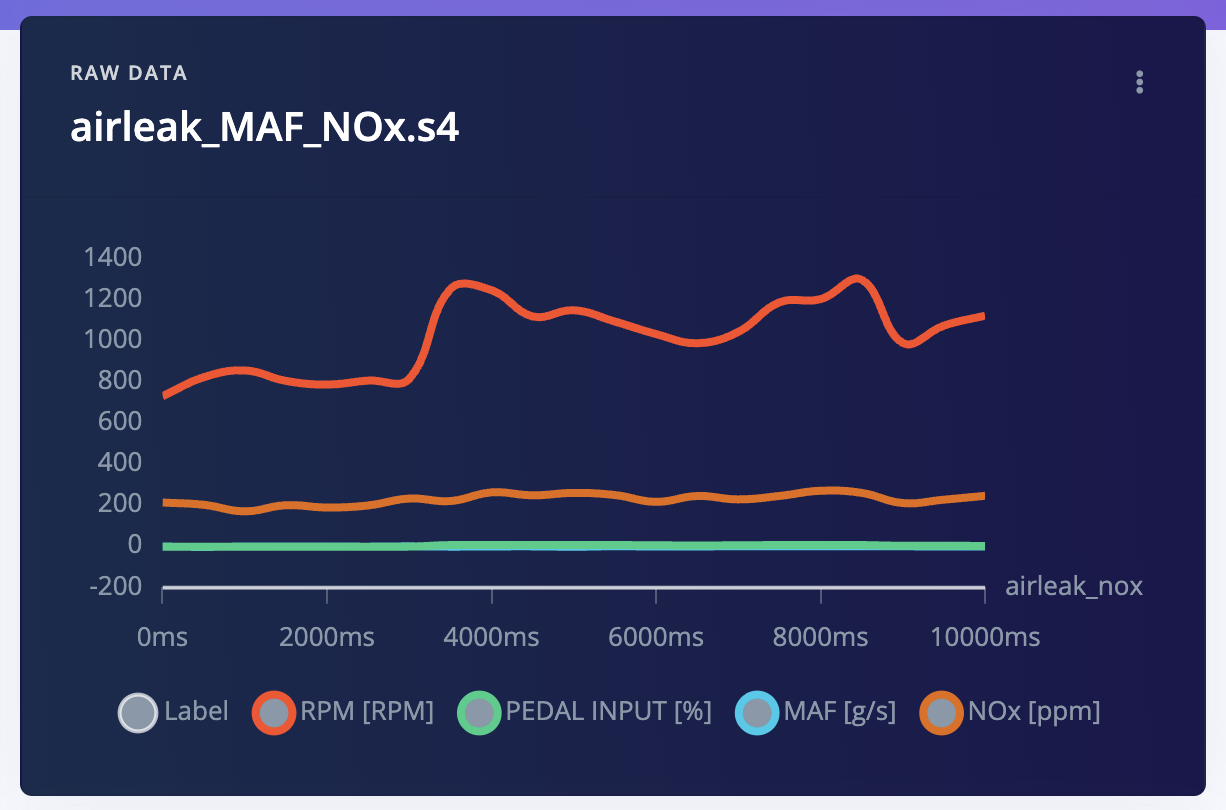 Goal: Detect an intake air leak from OBD-II signals by finding windows where NOx is disproportionately high relative to load (throttle / airflow / RPM).Signals we will use
