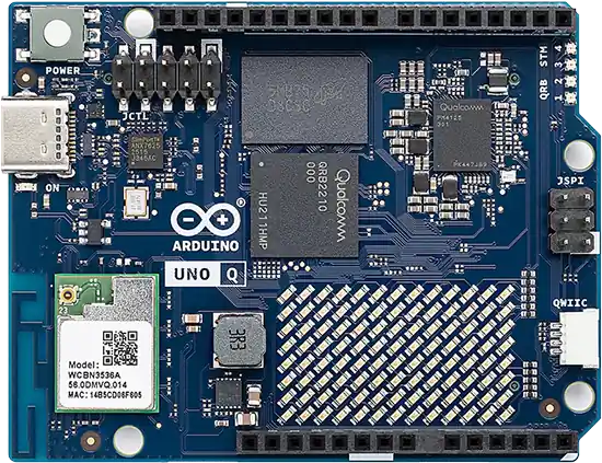 The Uno Q consists of:- Qualcomm QCS2210 – Runs Linux Debian (host logic, logging, cloud, UI).